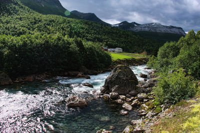 Река, достаточно спокоино стекавшая с перевала, в районе Гудбрандхюве